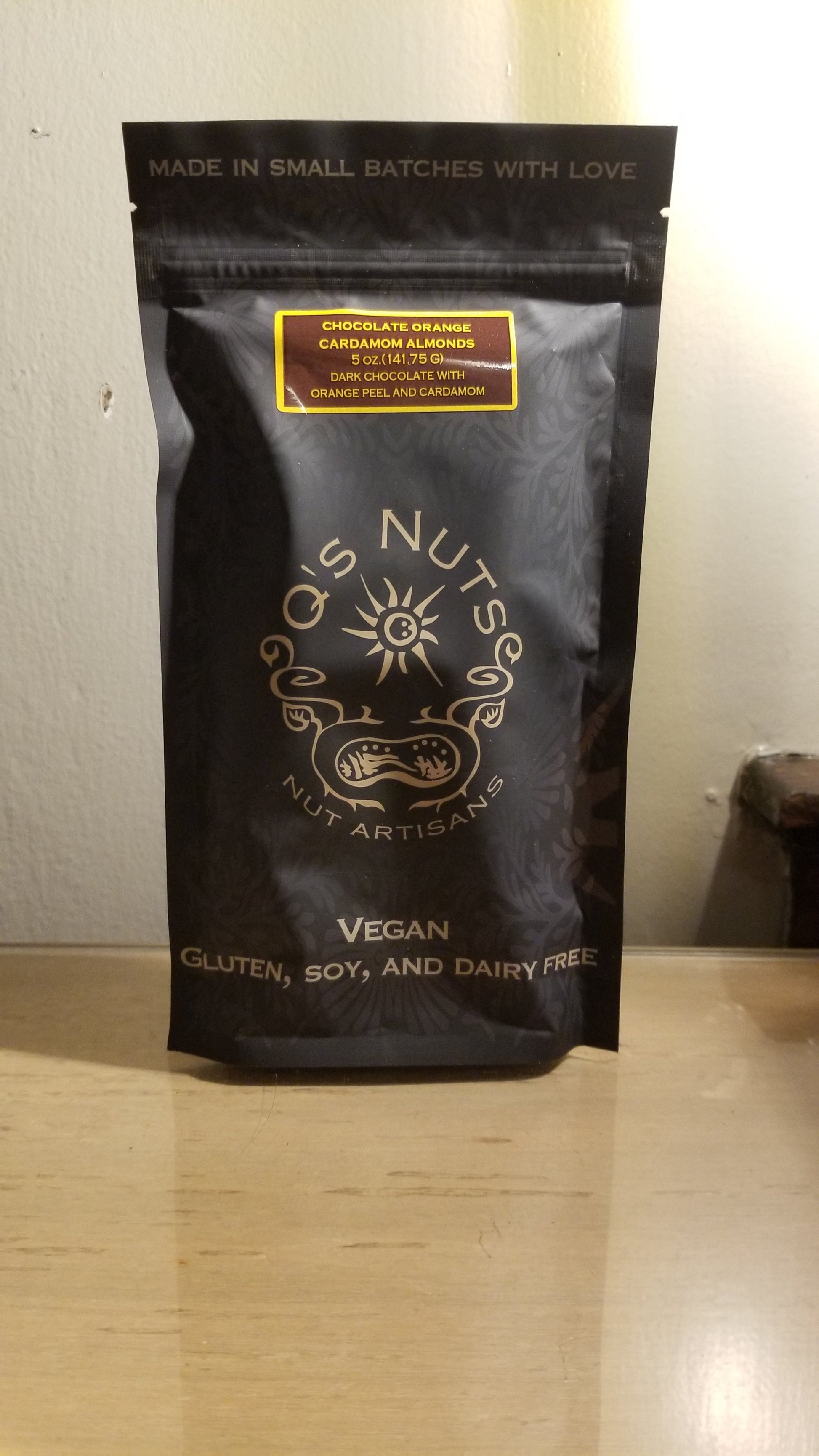 Ingredients: almonds, raw organic sugar, dark Taza chocolate, orange, cardamom, natural flavor.