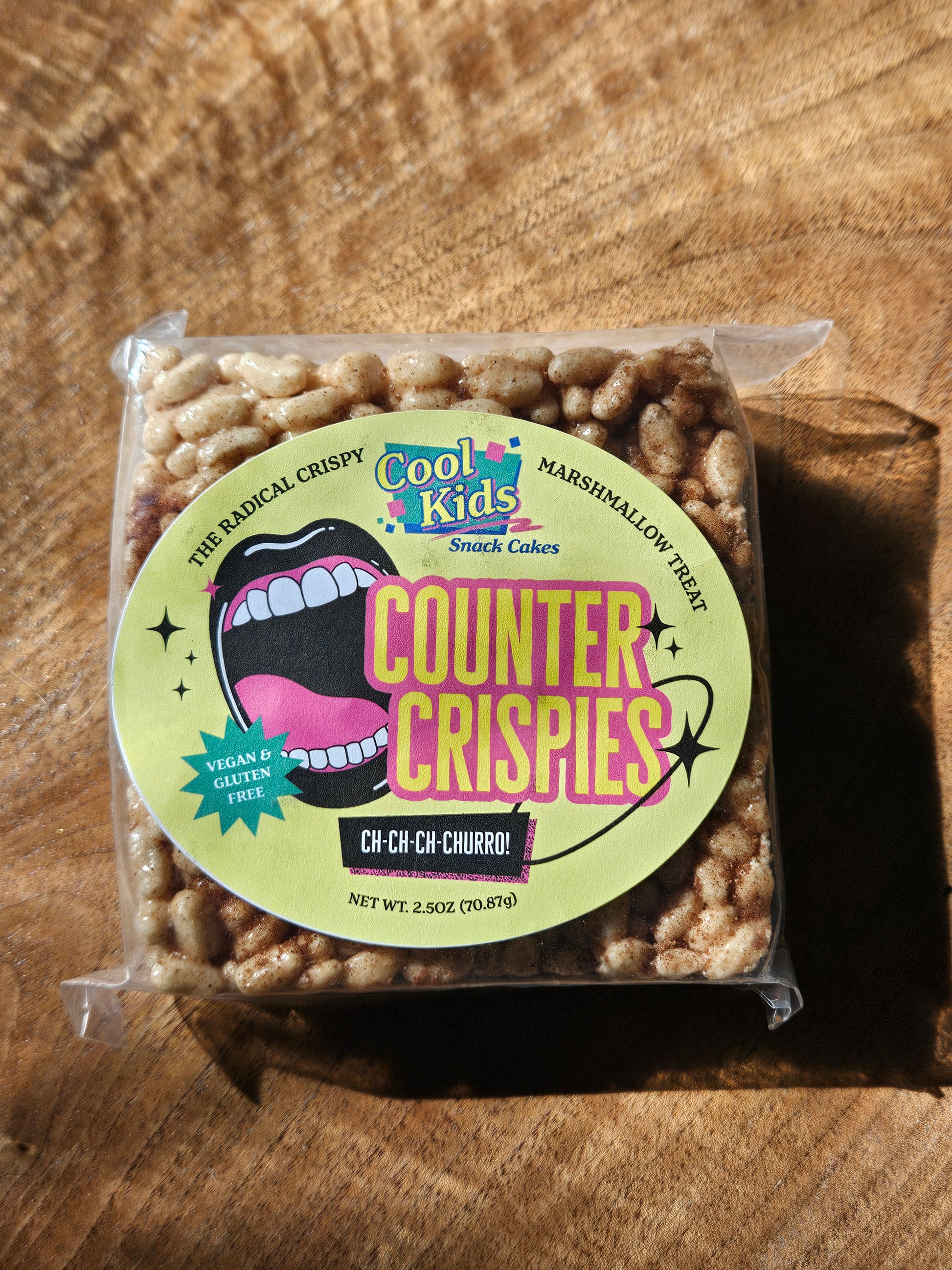 Ingredients: Rice cereal, sugar, vegan marshmallow, corn syrup, vegan butter, vanilla extract, salt, cinnamon. *contains soy. See photos for expanded ingredient list.