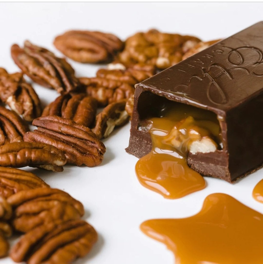 Yep. Pecans, caramel, sea salt. In a dark chocolate shell.