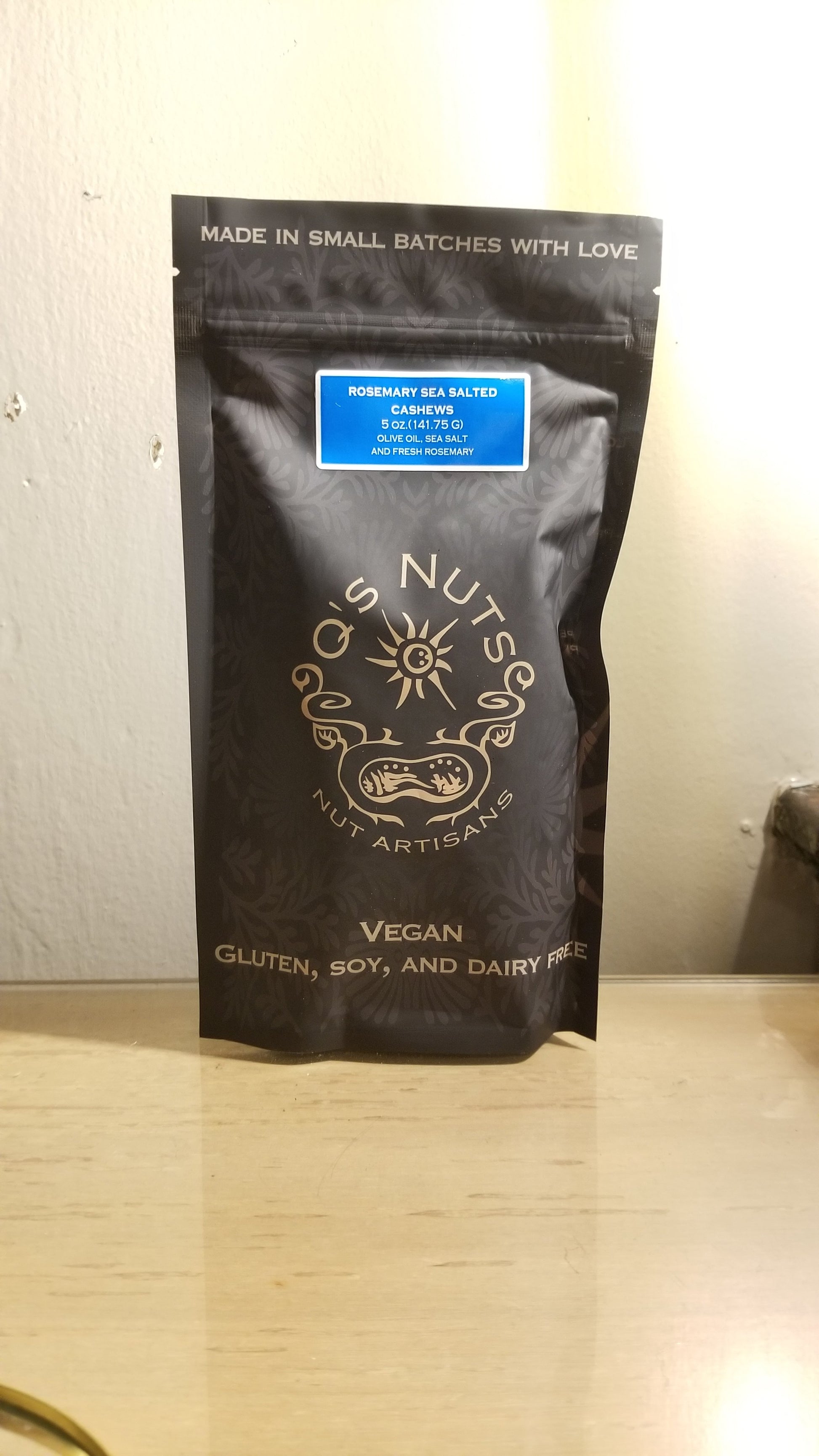 Ingredients: cashews, olive oil, sea salt, rosemary.